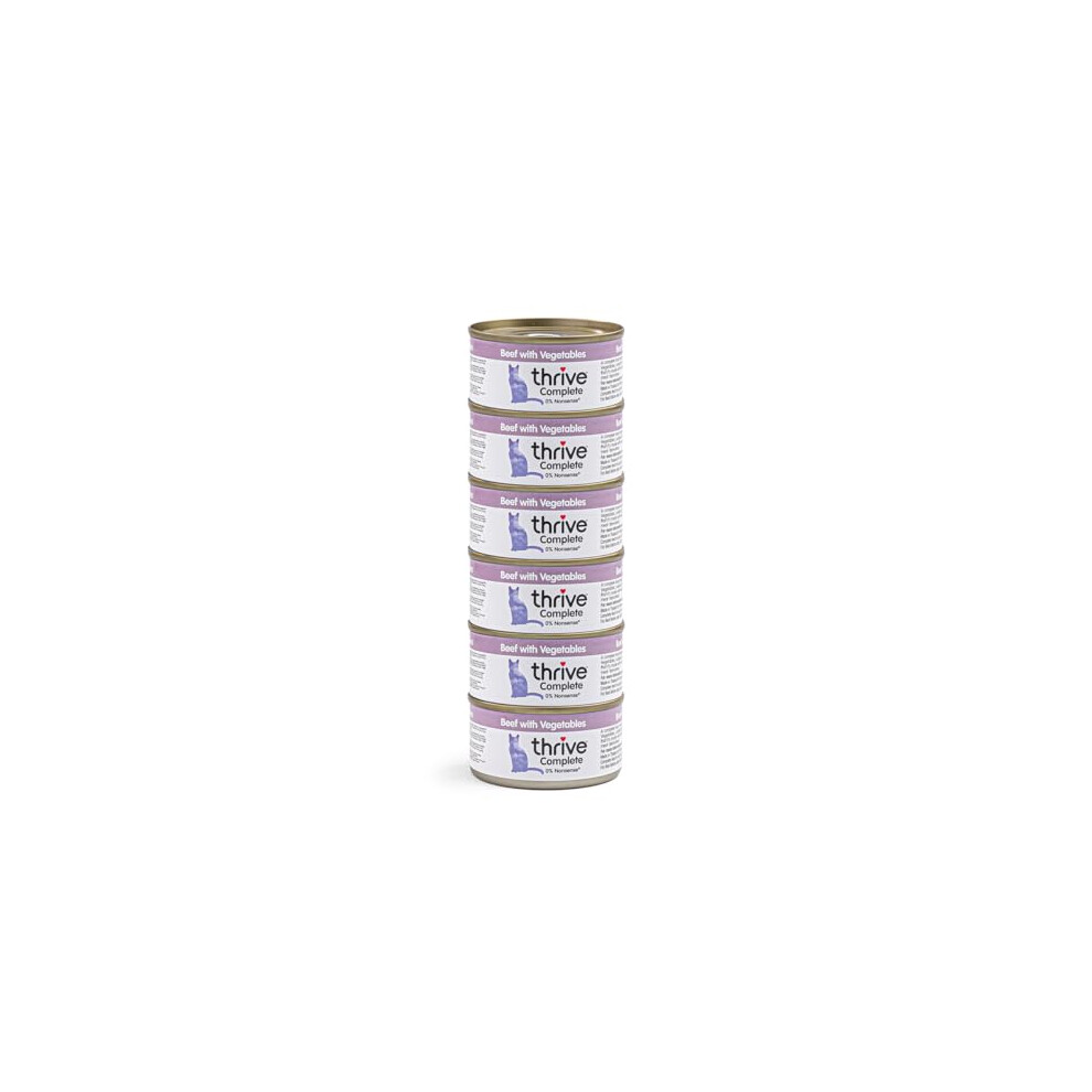 Thrive Wet Cat Food Beef with Vegetables Complete for Adult & Senior Cats Nutritious Gourmet Quality Cat Food Tins. Hypoallergenic 75g 6pk.