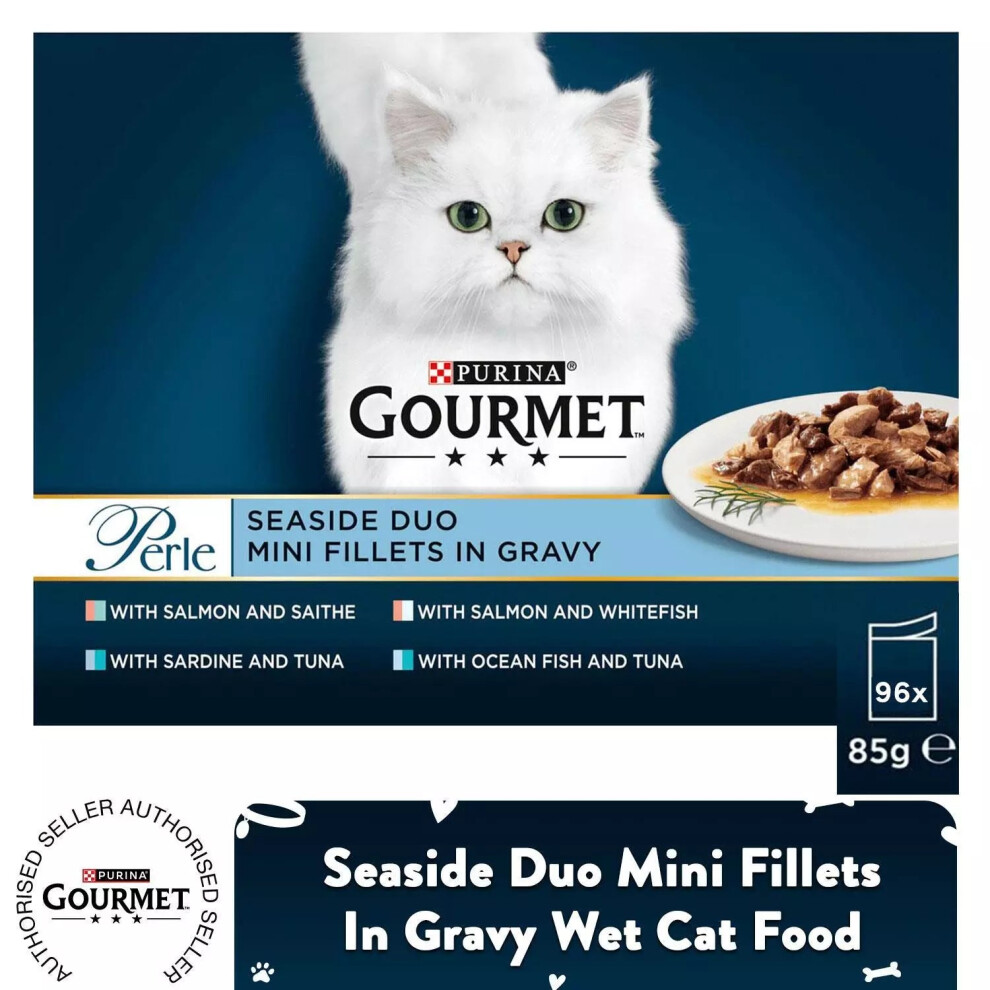 96 x 85g Gourmet Wet Cat Food Perle Seaside Duo Mini Fillets In Gravy, 3-6 Y