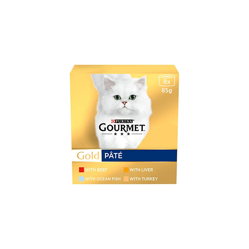 Gourmet Wet Cat Food Gold Pat? 8x85g (Multipack of 6) - Mix of Ocean Fish, Liver, Turkey, Beef, suitable for Adult and Senior Cats - Tinned Cat Food