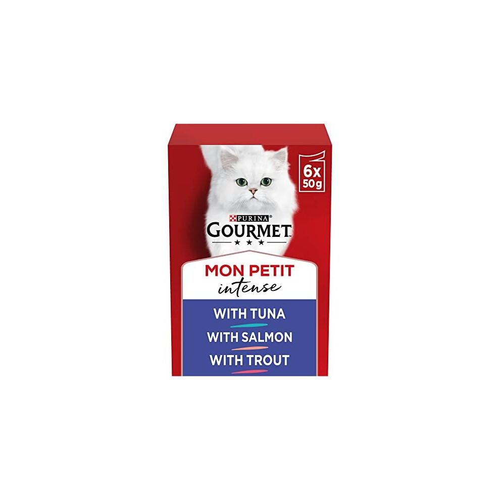 GOURMET Mon Petit Intense Fish Variety Tuna, Salmon, Trout Wet Cat Food 6x50g (Pack of 8)