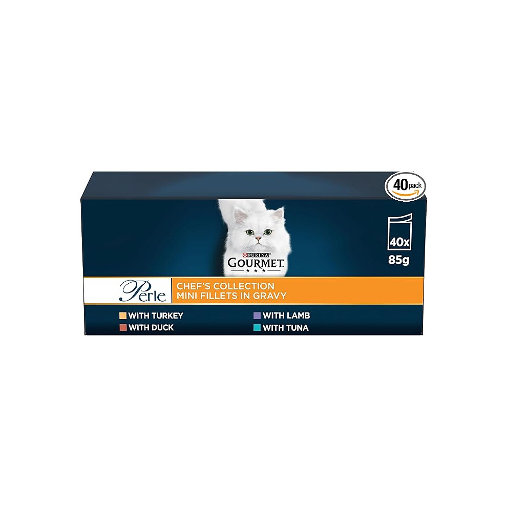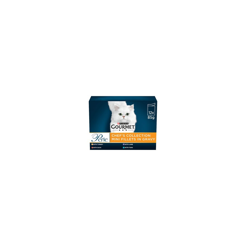 Gourmet Perle Chef's Collection in Gravy - Wet Adult Cat Food with Turkey, Tuna, Duck & Lamb, Complete & Balanced