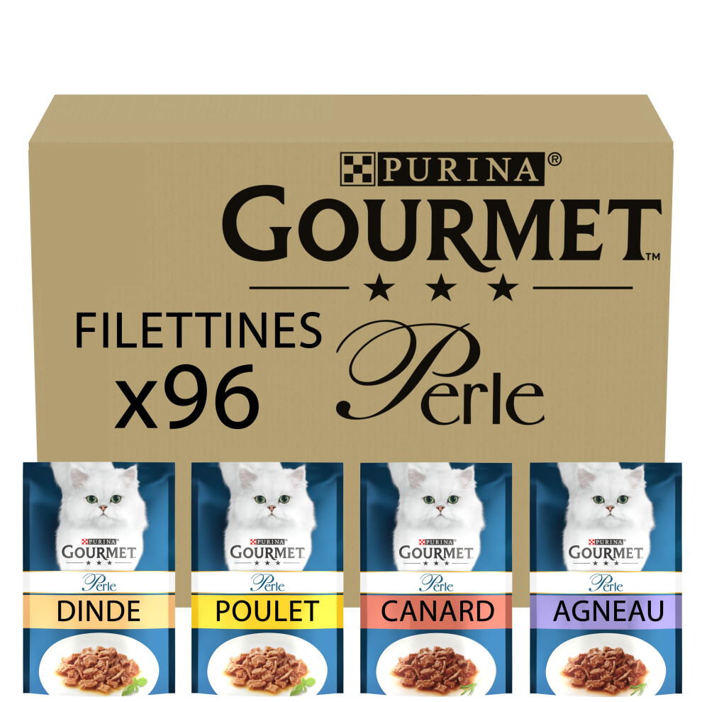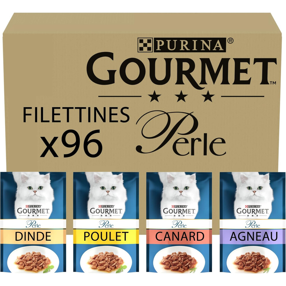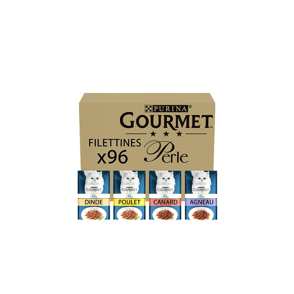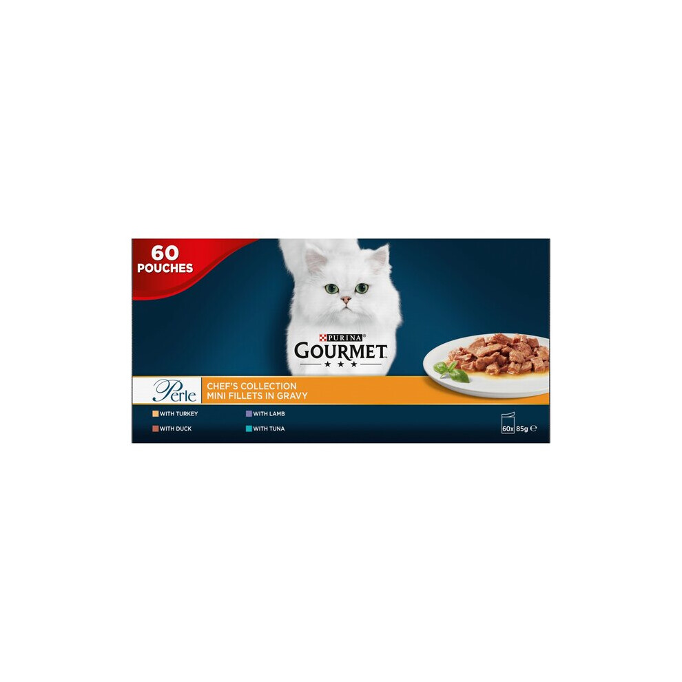 Gourmet Perle Adult Wet Cat Food Chef's Collection in Gravy with Duck, Lamb, Chicken, Turkey 96 x 85g Packs