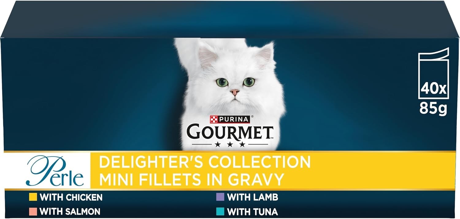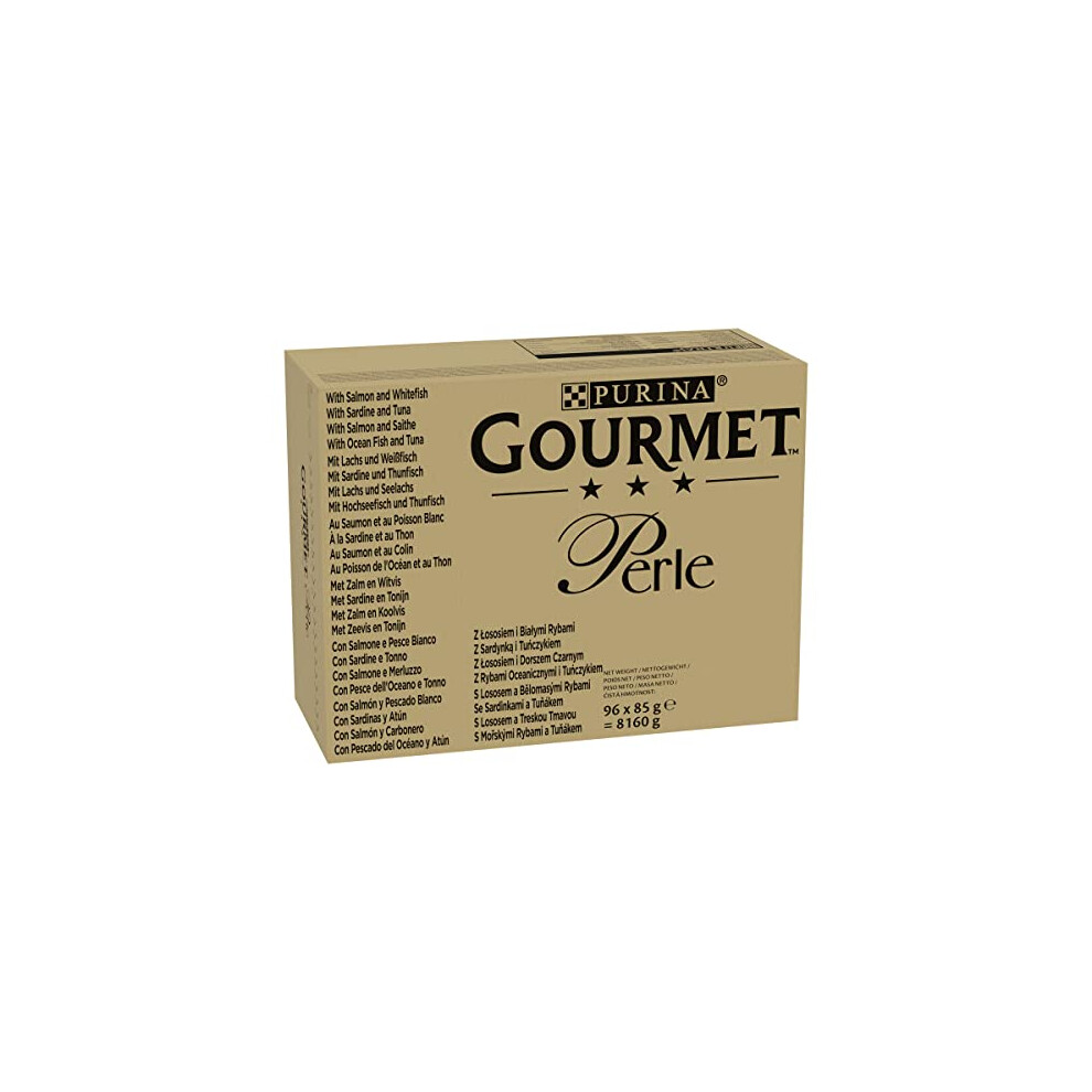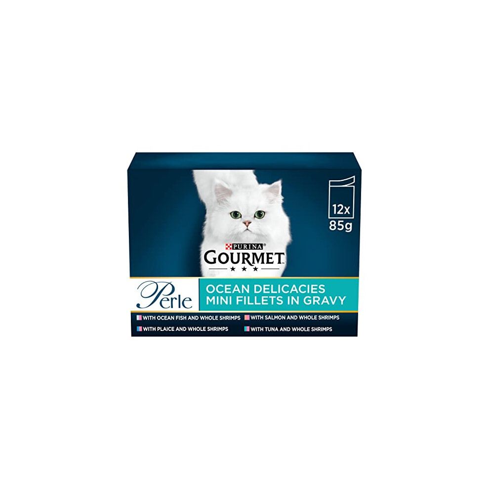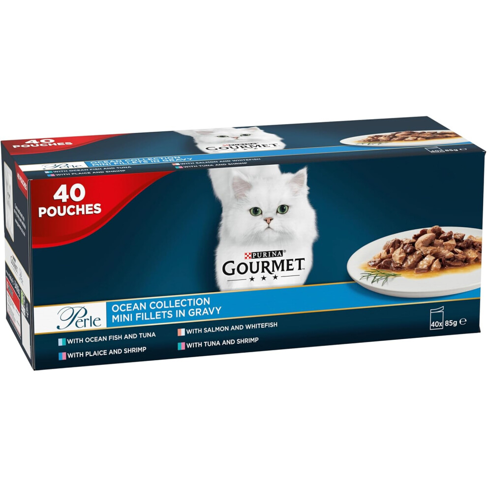GOURMET Perle Ocean Collection Adult Wet Cat Food Mini Fillets in Gravy Tuna, Shrimp, Plaice, Salmon, White fish, Ocean Fish 40 x 85g Pouches