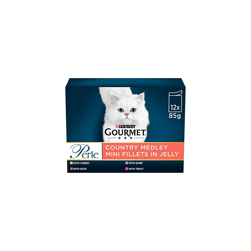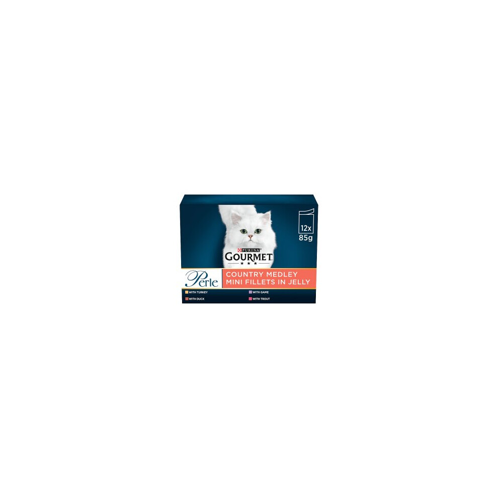 Gourmet Perle Mini Fillets in Jelly Country Medley Wet Cat Food Pouches; for Adult and Senior Cats (Turkey,Trout,Duck,Game) 96x85g