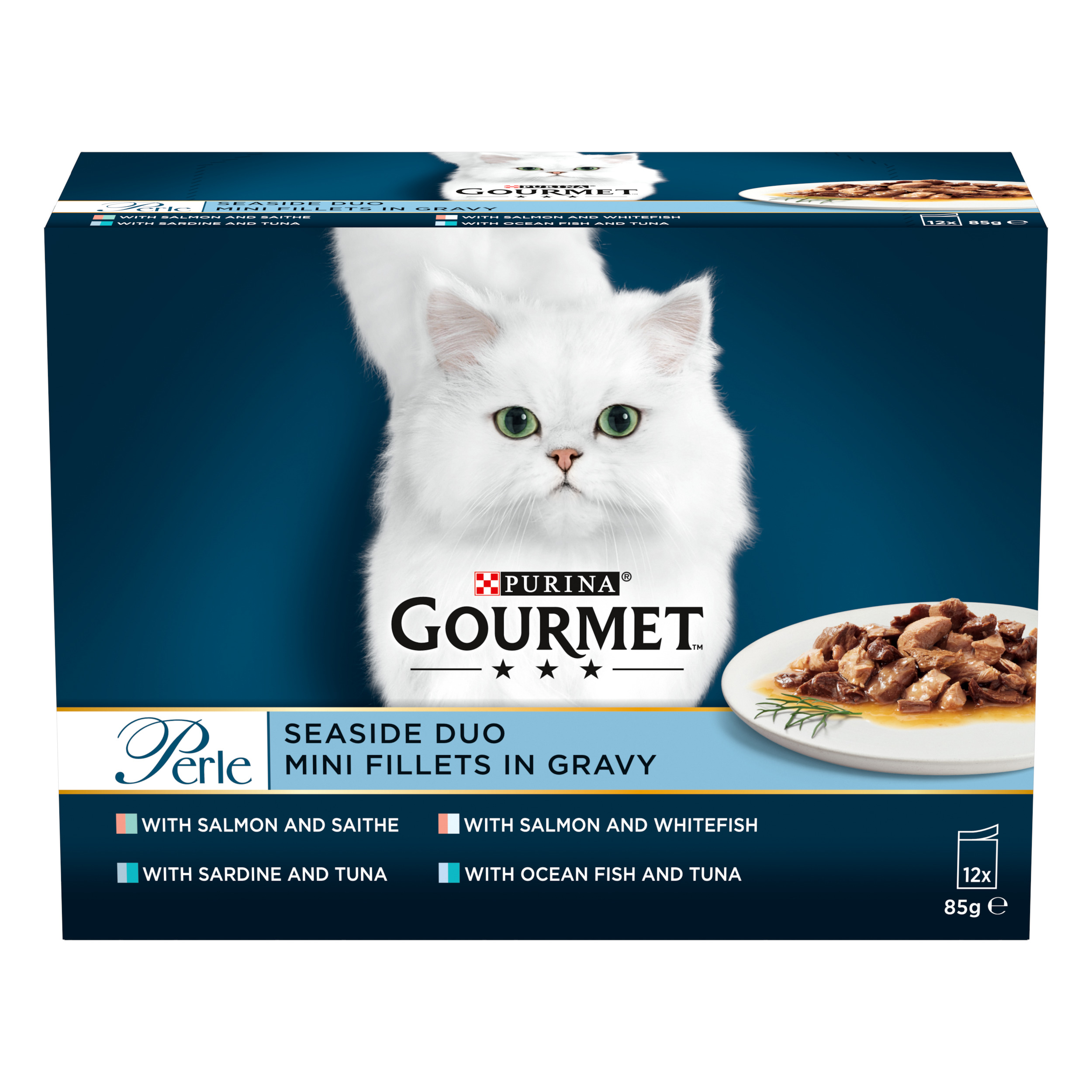 Gourmet Perle Pouches Mixed Mega Pack 96 x 85g - Seaside Duo Mini Fillets in Gravy