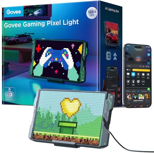 Govee Pixel Light Gaming, 52x32 RGB LED Panel, Smart Pixel Art Light, 150+Scene Modes and Music Sync, with AI Lighting Generation, Work with Alexa & Google Assistant for Tabletop Setup and Game Room