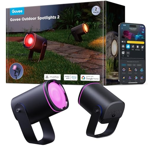 Govee Outdoor Spotlight, Waterproof Garden Lights, RGBWIC LED Outdoor Lights, Dimmable 700lm with 69 Scene Modes and 16 Million Colors for Patio, Works with Alexa, Google Assistant, and Matter. 2 Pack