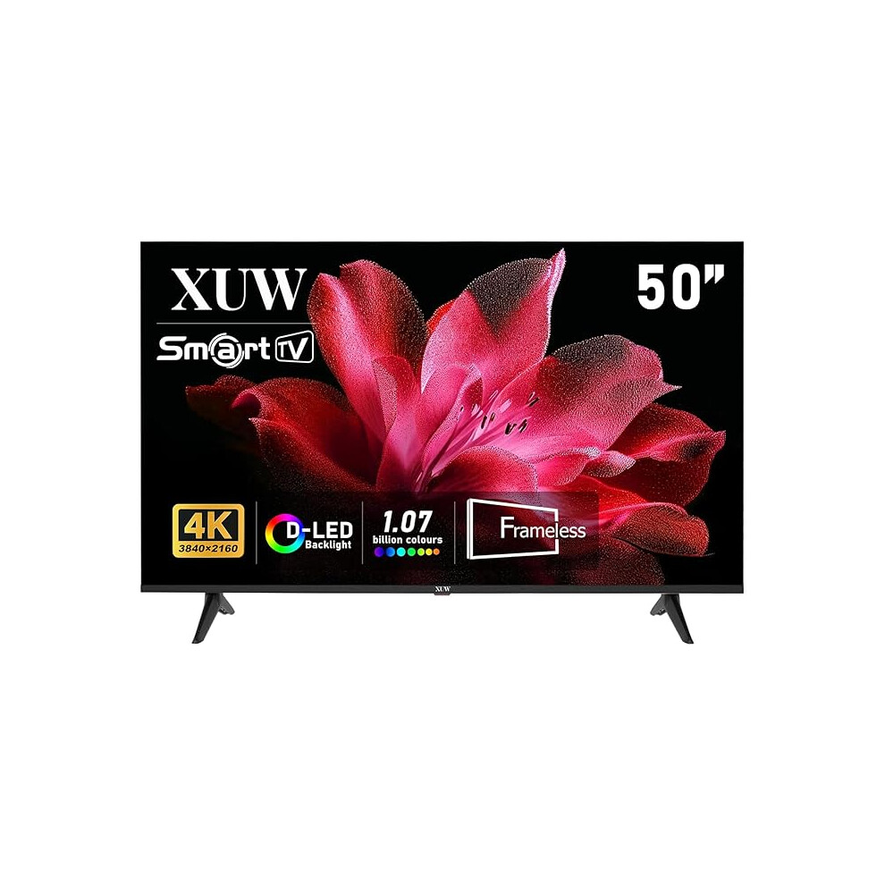 XUW 50 inch UHD 4K Smart TV, D-LED backlight Television, Borderless Design,HDMI USB DVB-T2/S2 RJ45 Interface, large screen for living room, bedroom,