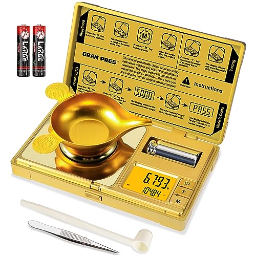 GRAM PRES High Precision Digital Mini Pocket Gram Scale, 50g/0.001g, For Weighing Powders, Jewelry, Medicine, Gem, Reloading, Gold, With Cal Weight, Tweezer And Tray