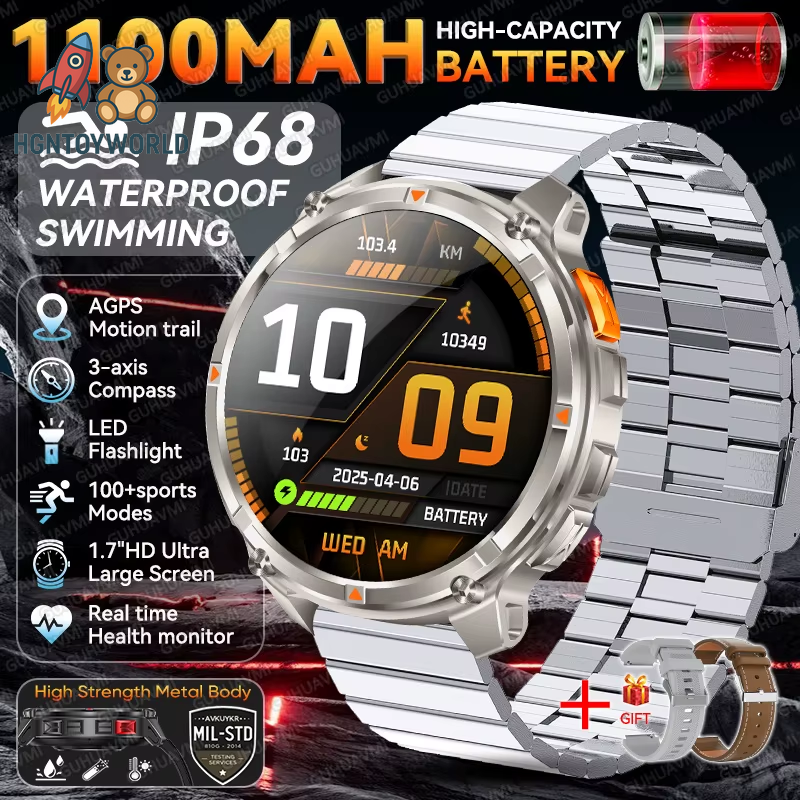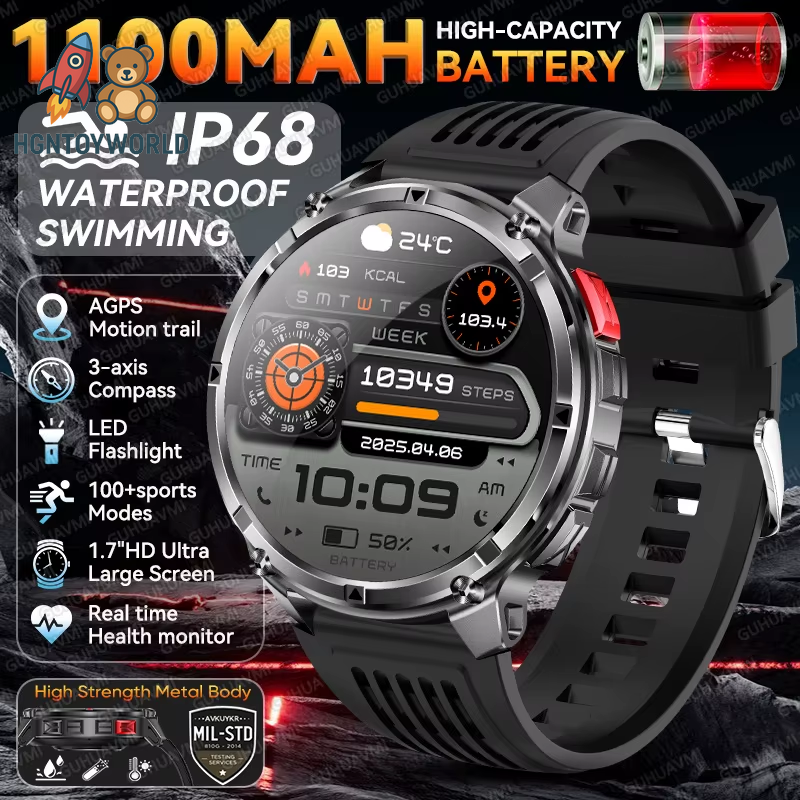 2025 New 1100Mah Large Battery Outdoor Smart Watch Men GPS Compass Heart Rate 10