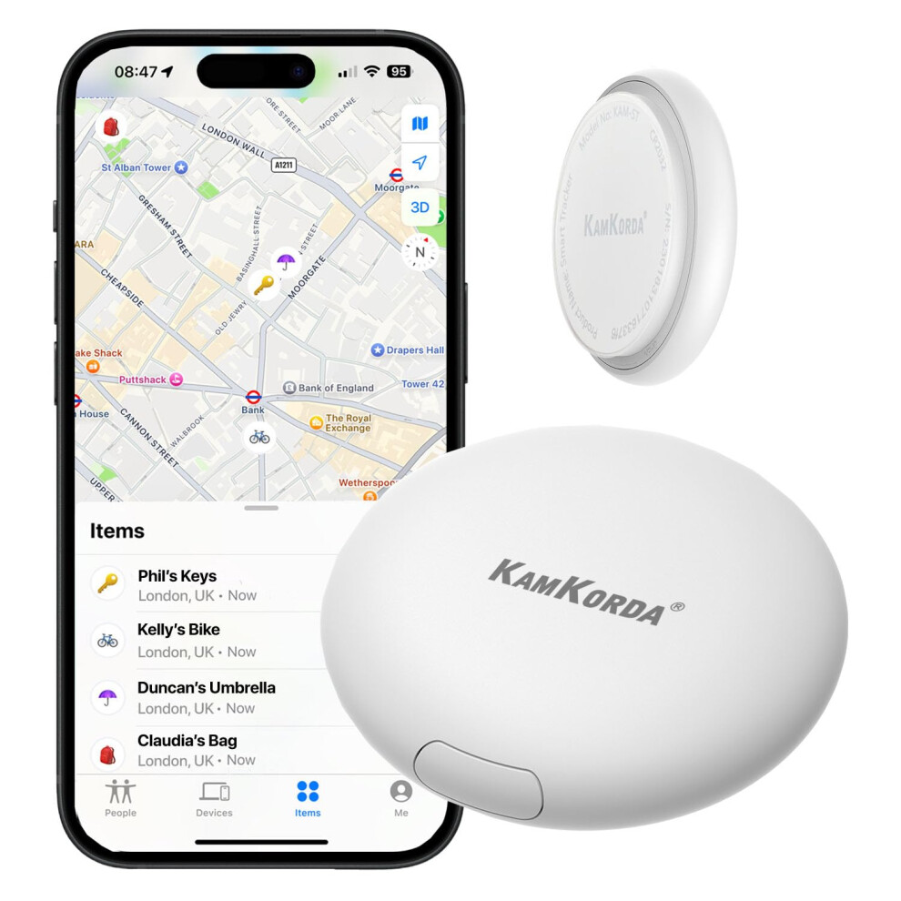 KamKorda Smart Tag Tracker, Bluetooth Key Finder, Air Tag, GPS Tracker Tag for Keys, Wallet, Pets, Luggage Tracking Device Compatible with iOS ? White