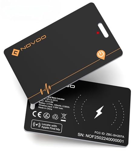 NOVOO Wallet Tracker Card, Rechargeable Wallet Finder (Wireless charging), Bluetooth Tracking Card - 1.9mm Thin, IP68 Waterproof(Only IOS, Apple Find My) Anti-loss GPS Air Tag for Passports, Luggage