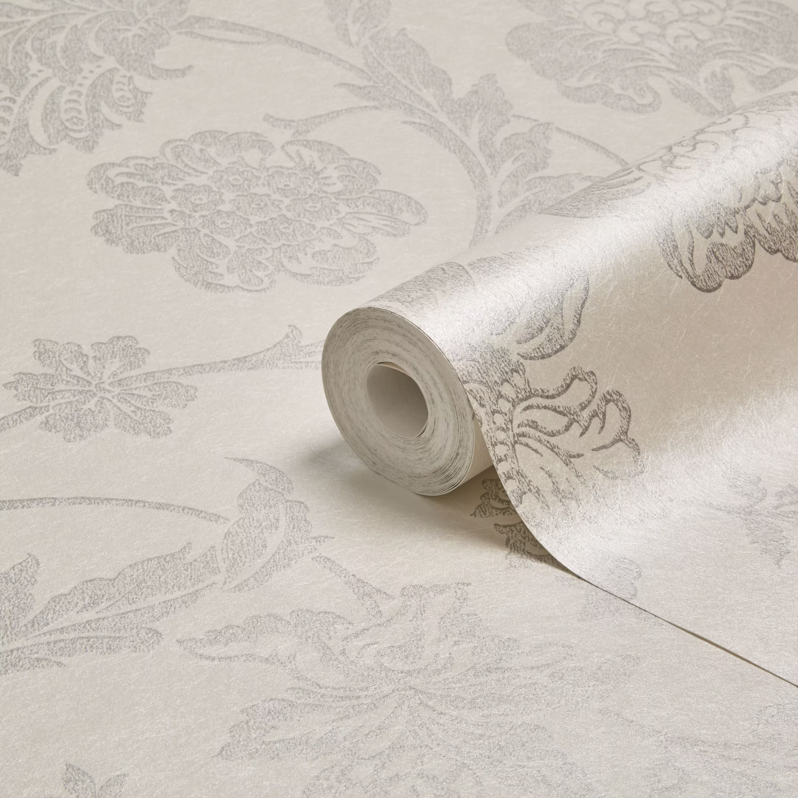 Graham & Brown Fibrous Sandringham Silver & White Floral Metallic Wallpaper