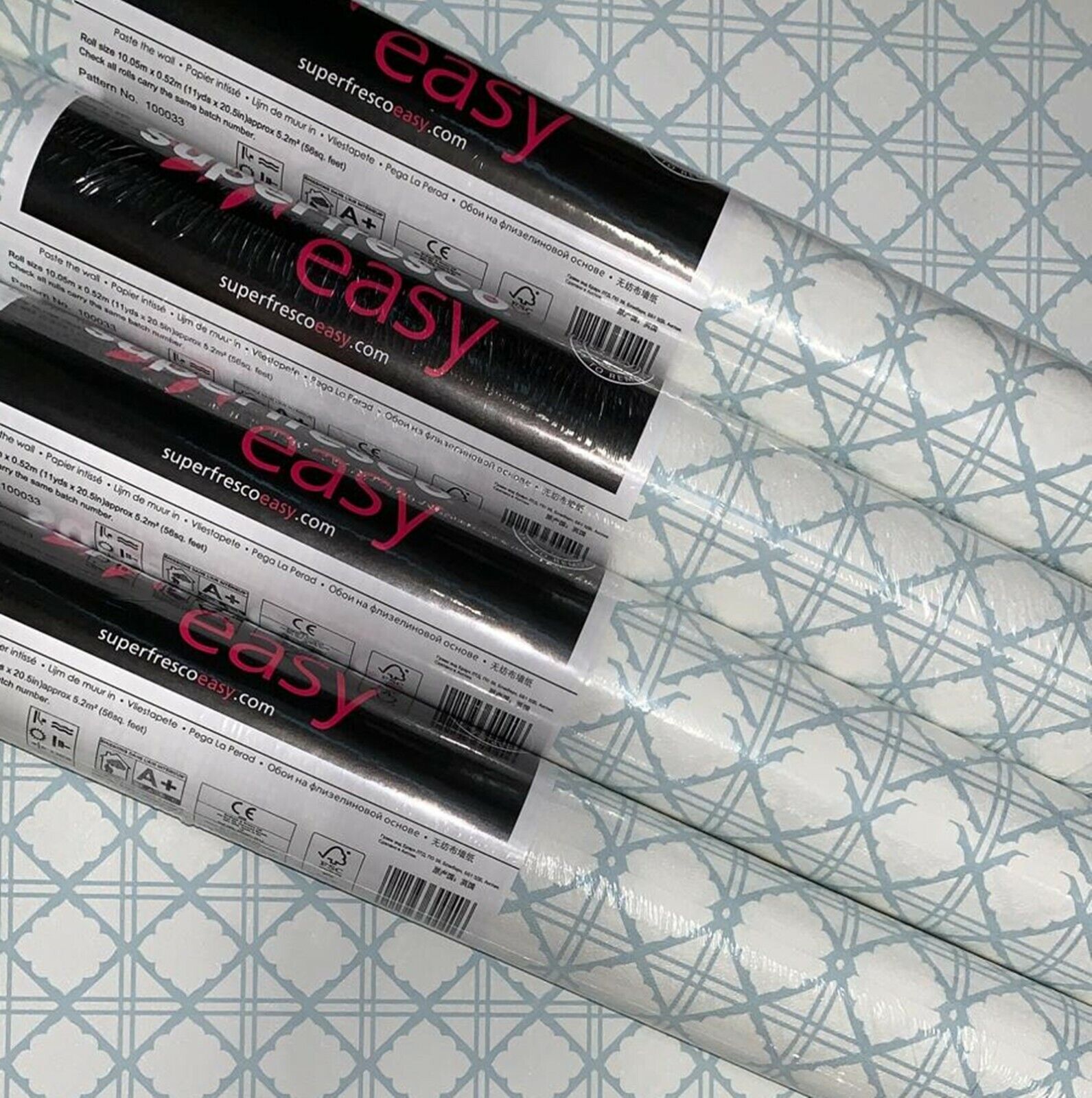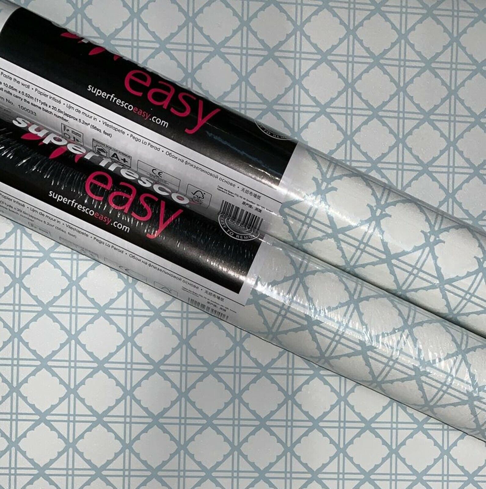 4 x Rolls Graham & Brown Diane Light Blue Geometric Diamond Vinyl Wallpaper