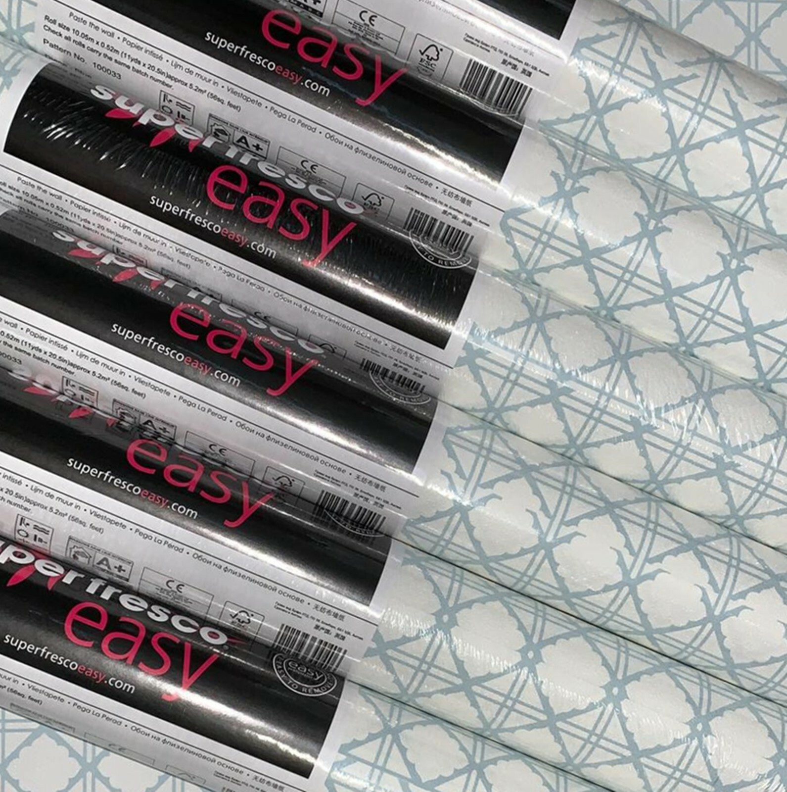 6 x Rolls Graham & Brown Diane Light Blue Geometric Diamond Vinyl Wallpaper