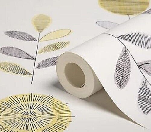Grey yellow Flower Wallpaper sketch Smooth Vinyl Coated Fresco Graham & Brown