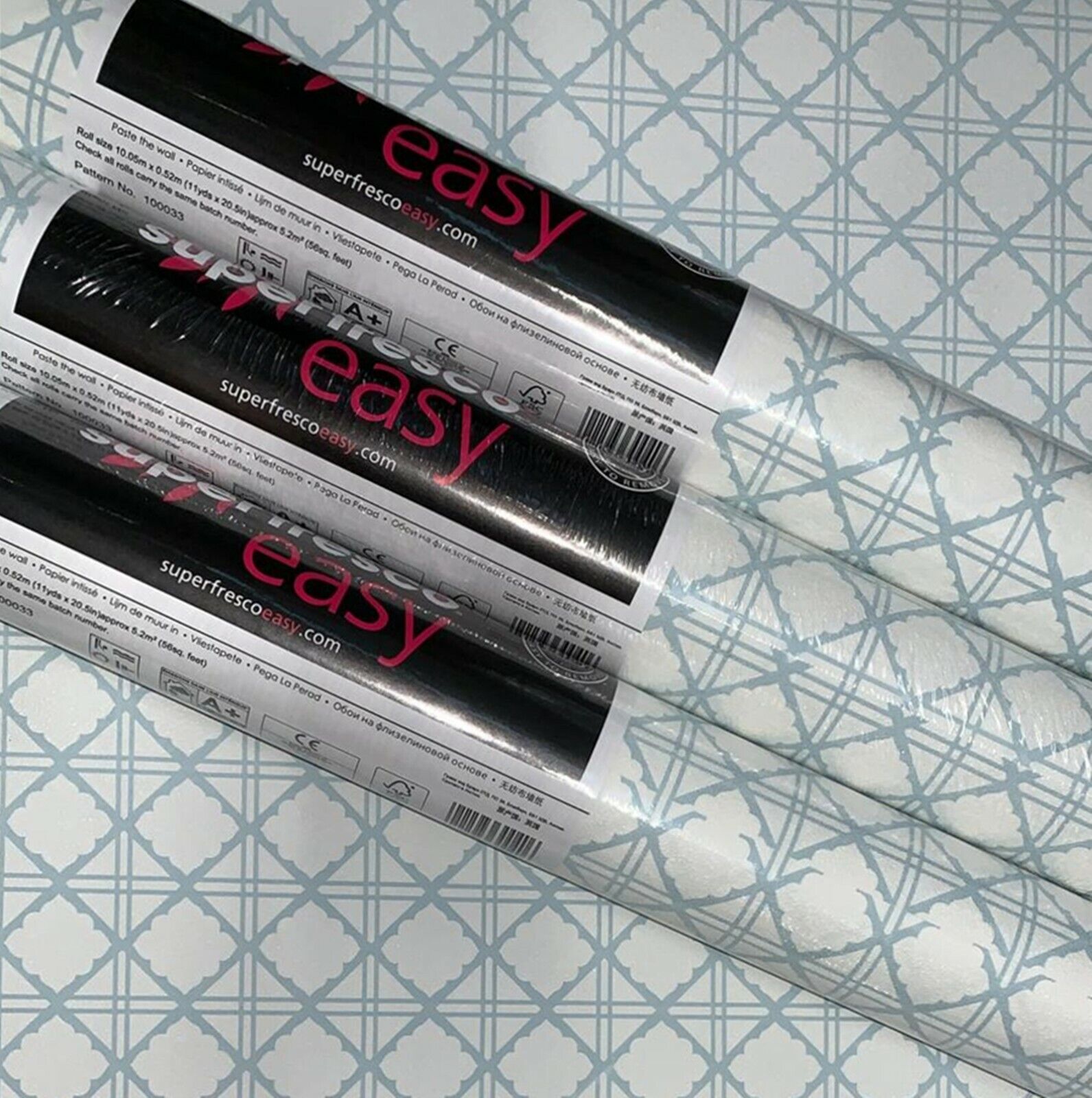 3 x Rolls Graham & Brown Diane Light Blue Geometric Diamond Vinyl Wallpaper