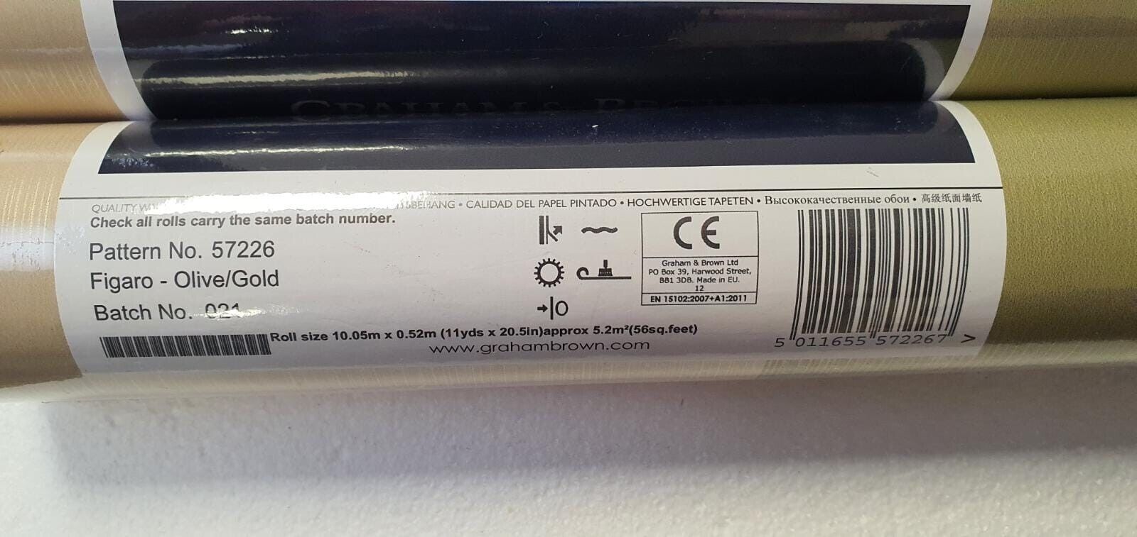 2 x Rolls Graham & Brown Figaro Wallpaper Olive/Gold- Batch 021 57226 (CR038 LD)