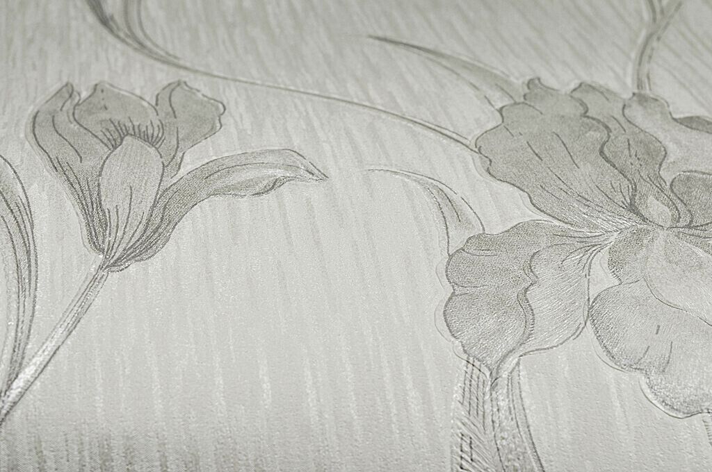 Graham + Brown Iris White Grey Emboss Floral Flower Trail Vinyl Wallpaper 20-965