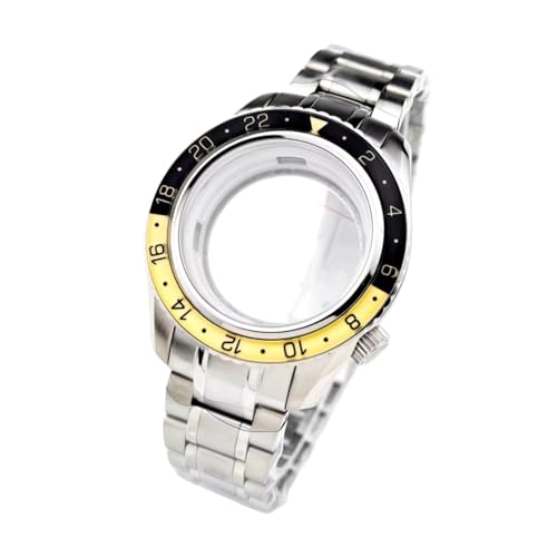 ROUREOX 44mm GMT Watch Case Luminous Ceramic Bezel Sapphire Crystal Stainless Steel Bracelet NH34 NH35 Movement Modding Set for Grand Seiko-A6 Gold 44MM