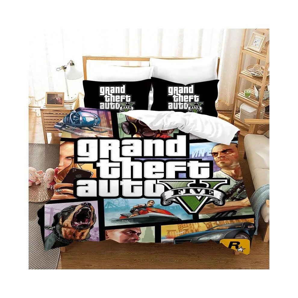 (1, 180x210cm 3pcs) Game GTA V Bedding Set Cartoon Duvet Covers Pillowcase Grand Theft Auto 5 Comforter Bedding Sets Bed Linens Bedclothes(No Sheet