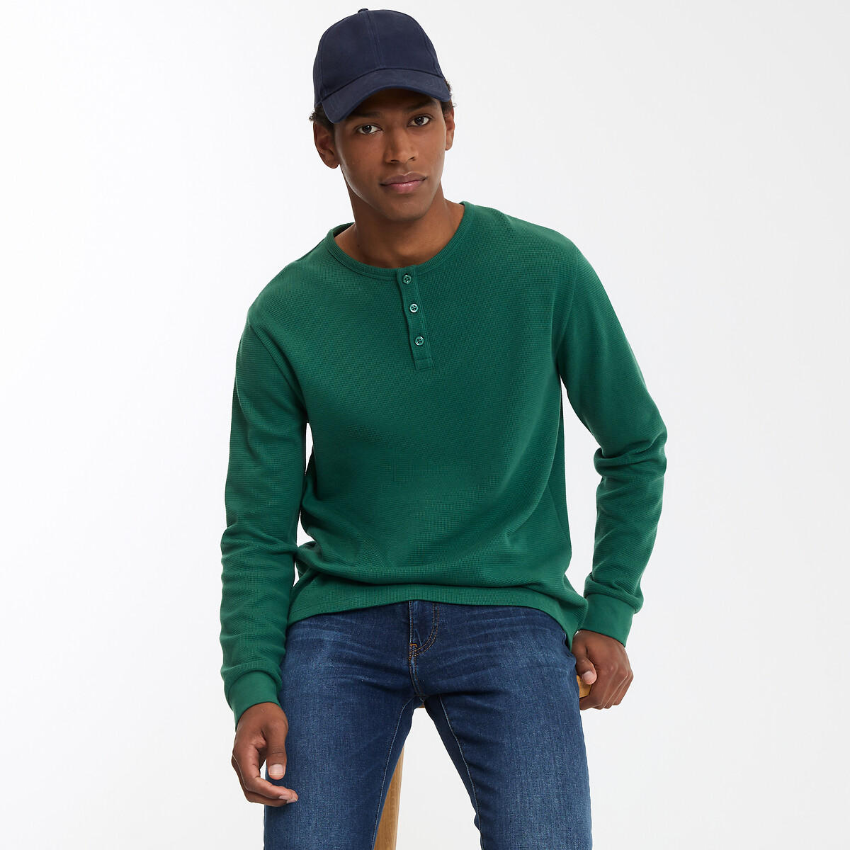 MakingDa Henley T Shirt Mens Long Sleeve Slim Fit Waffle Grandad Collar 4 Button Jumper Tops Smart Casual Collarless Shirts-Army Green-M