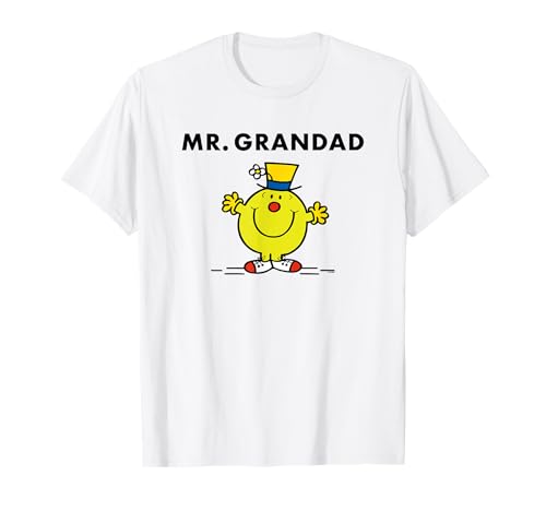 Mr. Men Little Miss T-Shirt - Mr. Funny Mr. Grandad - Unisex-Adults, Kids - White - S - Short Sleeve - Classic Fit - Grandad Collar