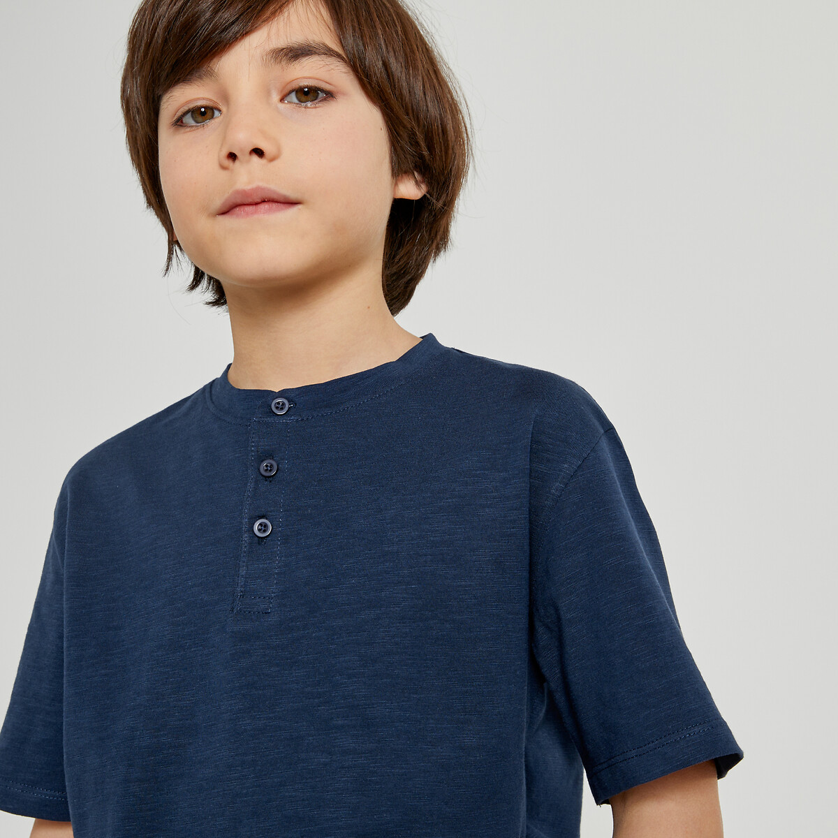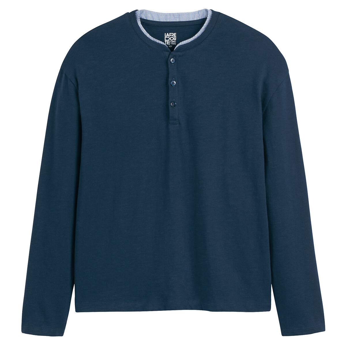 Cotton Grandad Collar T-Shirt with Long Sleeves