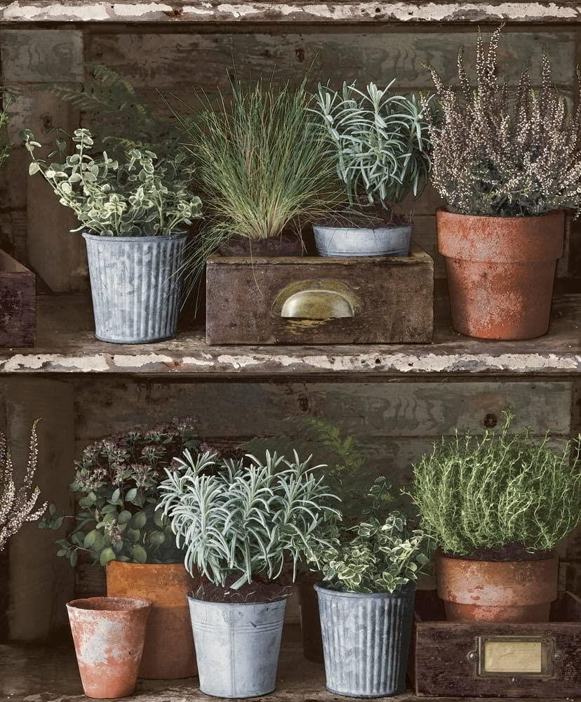Facade Flower Pots Wallpaper Grandeco Paste The Wall Vinyl Rustic Wood Effect