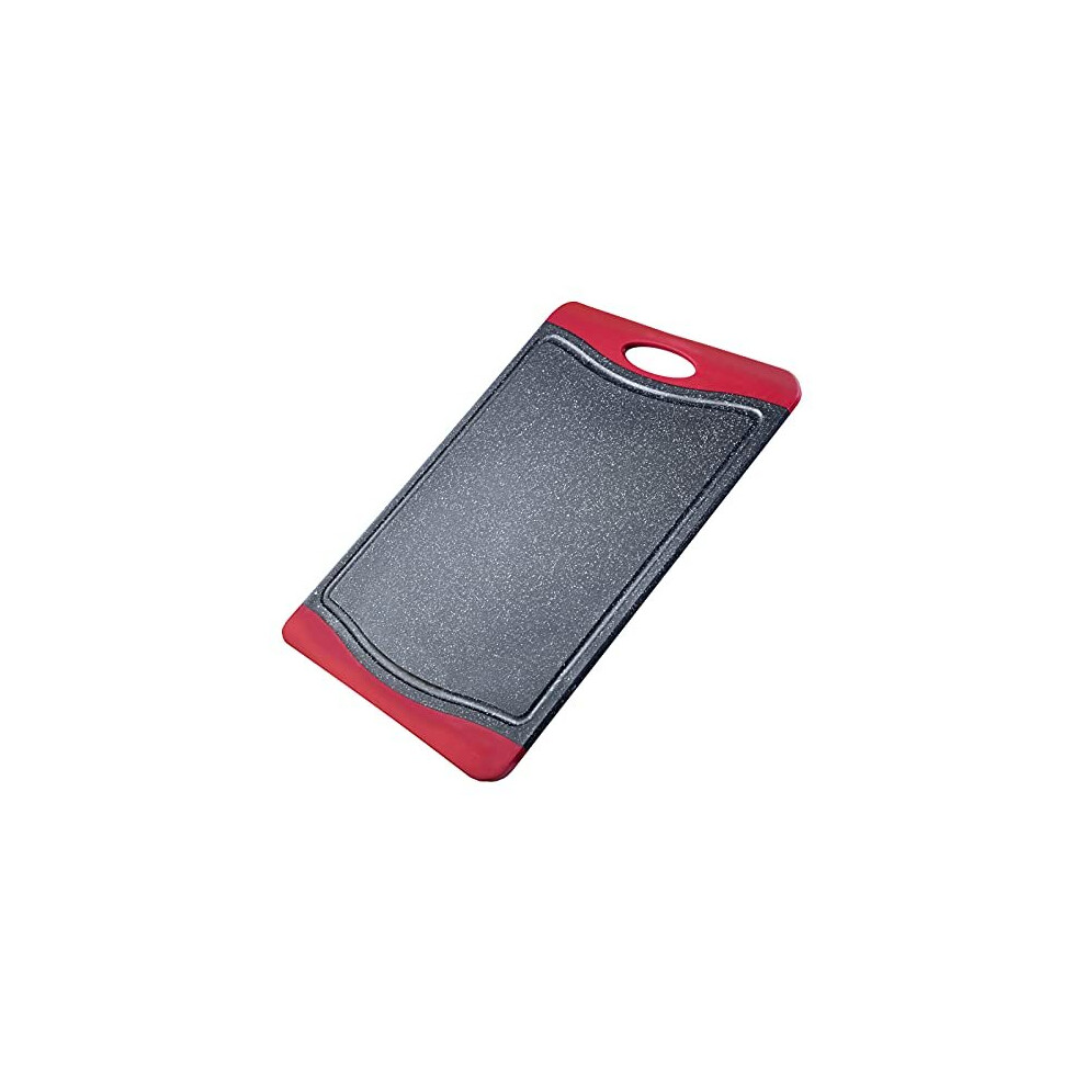Westmark Chopping Board with juice groove, Non-slip and blade-friendly, Cutting surface: 44.5 x 30 cm, Granite design, Plastic, Anthracite/Red,