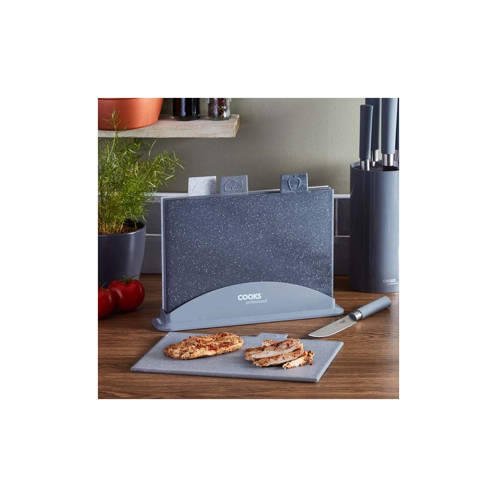 Cooks Professional Index Chopping Board Set of Four Plastic Folder Style Cutting Boards with Storage Case (Granite Effect)