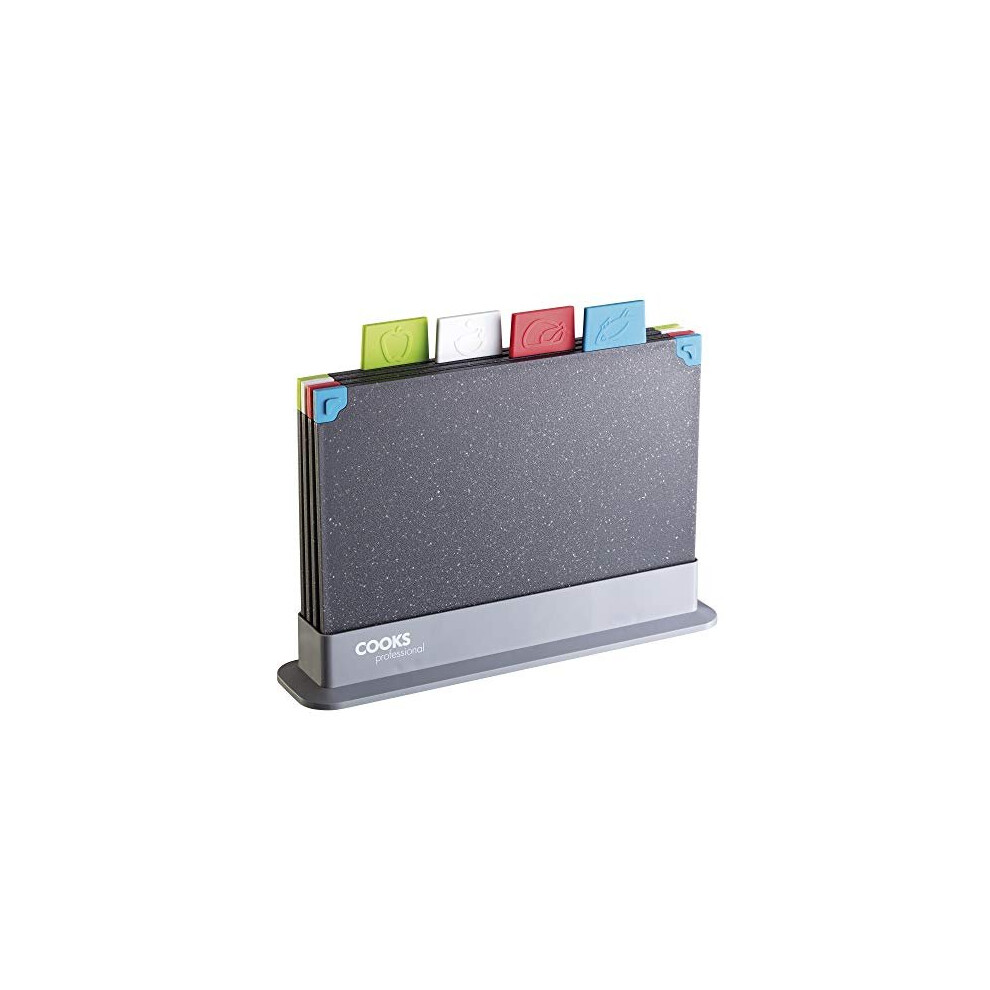 Cooks Professional 4-Piece Non-Slip Chopping Board Set with Storage Case, Granite Effect, Colour-Coded for Fruit & Vege, Dishwasher Safe