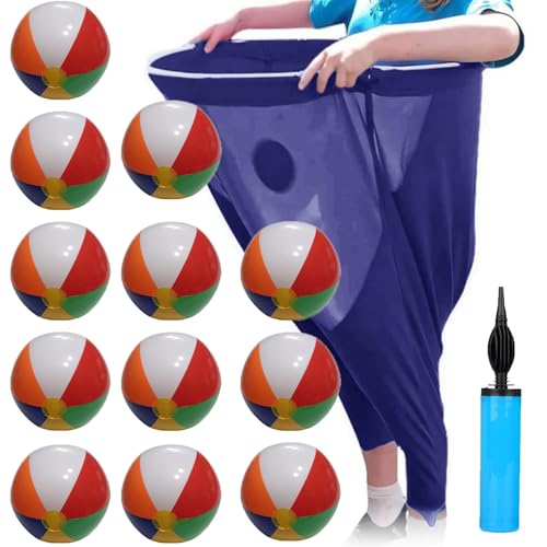 Granny Pants Yard Game Sets, Outdoors Game with 12 Bouncy Balls and 1 Air Pump, Funny Giant Stretchy Games Set, Party Family Reunion Games Night, for Kids & Adults (Blue)