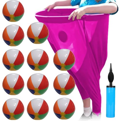 Granny Pants Yard Game Sets, Outdoors Game with 12 Bouncy Balls and 1 Air Pump, Funny Giant Stretchy Games Set, Party Family Reunion Games Night, for Kids & Adults (Pink)