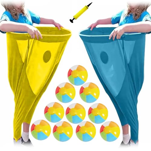 Granny Pants Yard Game Sets, Freaky Party Games Pants with 4 Bouncy Balls and Pump, Yard Games Field Family Reunion Game, Giant Outdoor Games Sets for Adults (2, Blue+Yellow)
