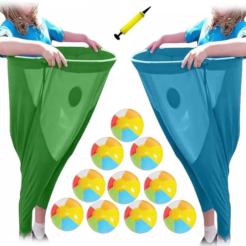 Granny Pants Yard Game Sets, Freaky Party Games Pants with 4 Bouncy Balls and Pump, Yard Games Field Family Reunion Game, Giant Outdoor Games Sets for Adults (2, Green+Blue)