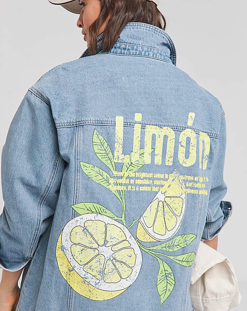 Simply Be Lemon Graphic Denim Jacket Light Wash - Simply Be - Size: 10