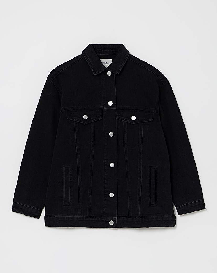 Simply Be Black Graphic Denim Jacket Washed Black - Simply Be - Size: 14