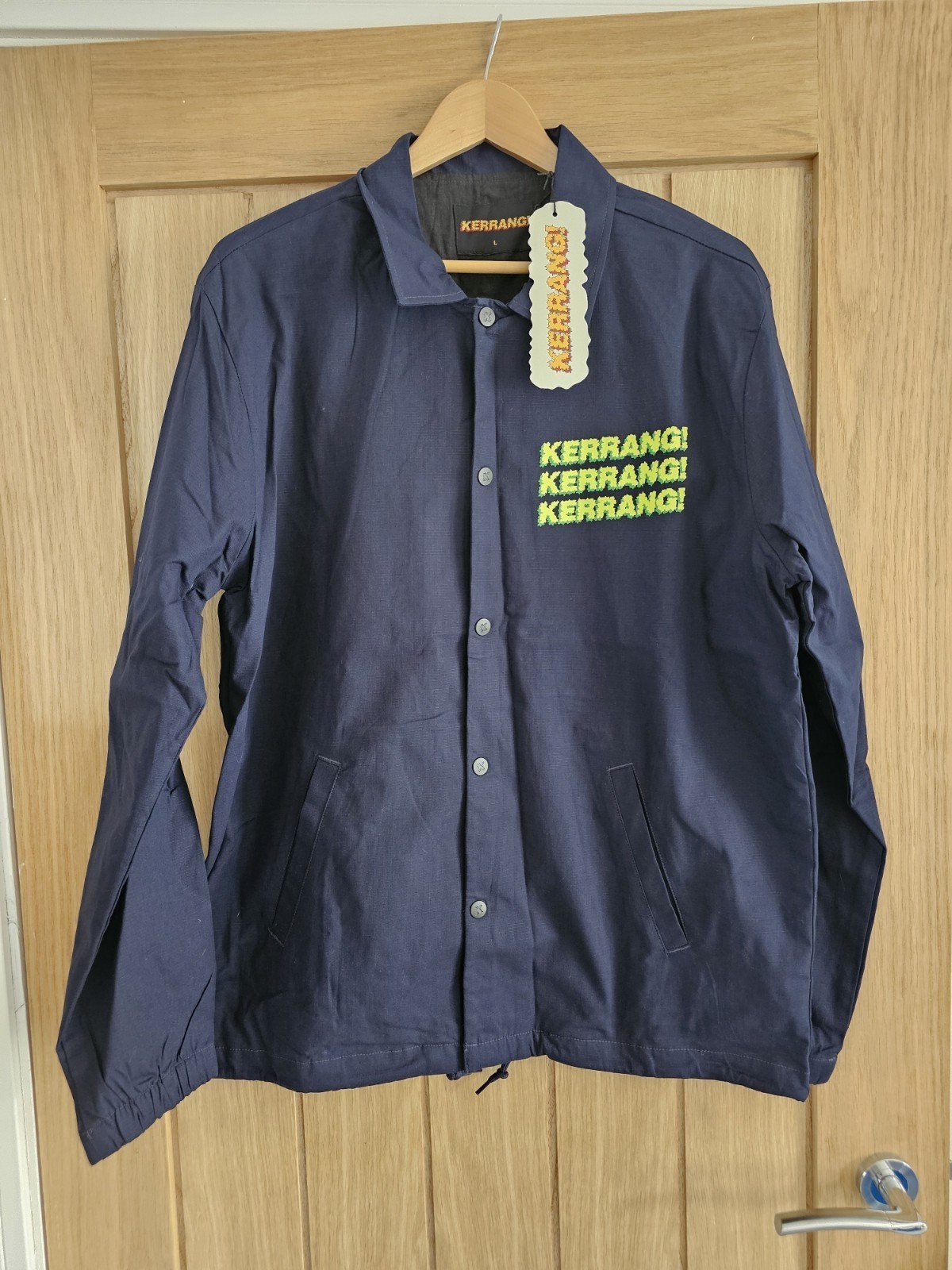 Kerrang ! Men’s Size L Navy Mega Metal Graphic Print Jacket Shacket RRP £105.00