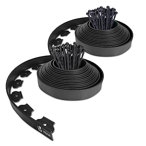 VOUNOT Lawn Edging 20m with 60 Pegs, Flexible Plastic Garden Edging Border Strips for Grass, Flower Beds, Path, Gravel, 5cm High, Black