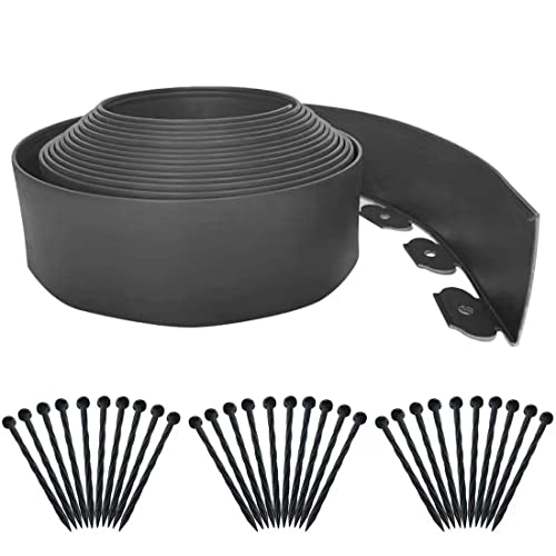 Lawn Edging Border 10cm Tall 15m Flexible Garden Edging Borders Strip with 75pcs Pegs for Yards Edge, Flower Beds Fence & Grass Paths Edging Tool, No Dig Plastic Edging for Lawns (Black)