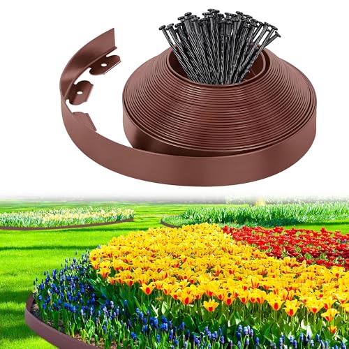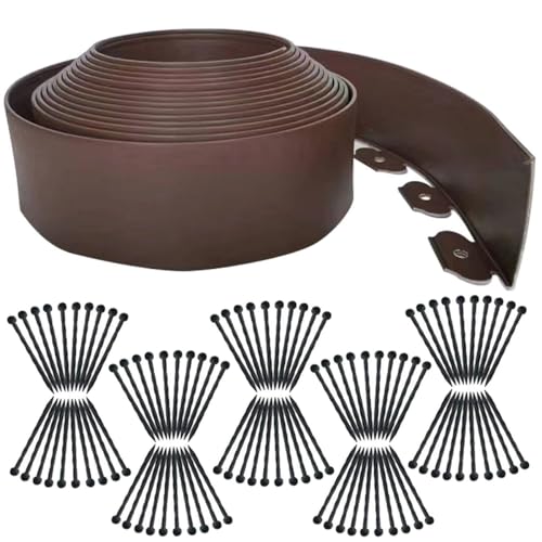 Lawn Edging Border 20m,Garden Edging Borders No Dig[Extra Tall 10cm High] with 100pcs Stakes,Flexible Landscape Edging,Mini Plastic Fence for Yard Flower Beds,Grass,Path -Brown