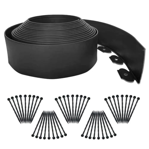 Lawn Edging Border 7cm Tall 10m Flexible Garden Edging Borders Strip with 50pcs Pegs for Yards Edge, Flower Beds Fence & Grass Paths Edging Tool, No Dig Plastic Edging for Lawns (Black)