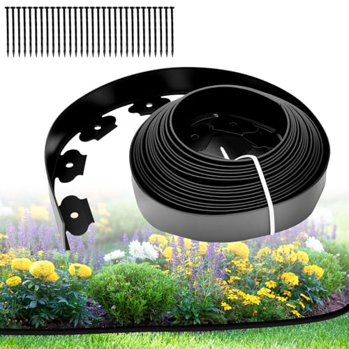Lawn Edging Border 10cm Tall 10m Flexible Garden Edging Borders Strip with 50pcs Pegs for Yards Edge, Flower Beds Fence & Grass Paths Edging Tool, No Dig Plastic Edging for Lawns (Black)
