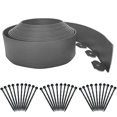 Lawn Edging Border 20ft Flexible Garden Edging Borders[Extra Tall 4in High] Landscape Edging with 30pcs Stakes, Mini Plastic Fence for Yard Flowerbeds,Grass,Path-Black