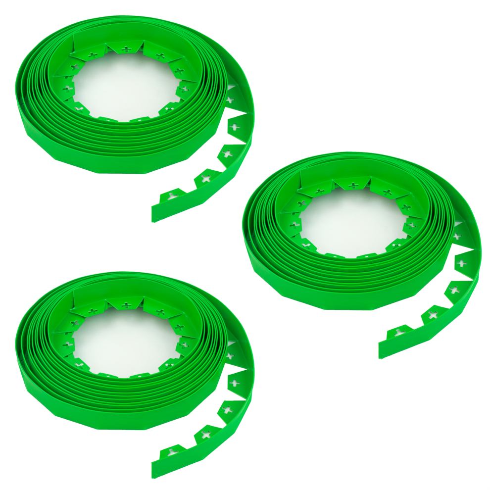 (3 Pack - 30m) KCT 10-50 Metre Green Flexible Plastic Lawn Edging Grass Border with Pegs Garden Edger Heavy Duty Flower Bed