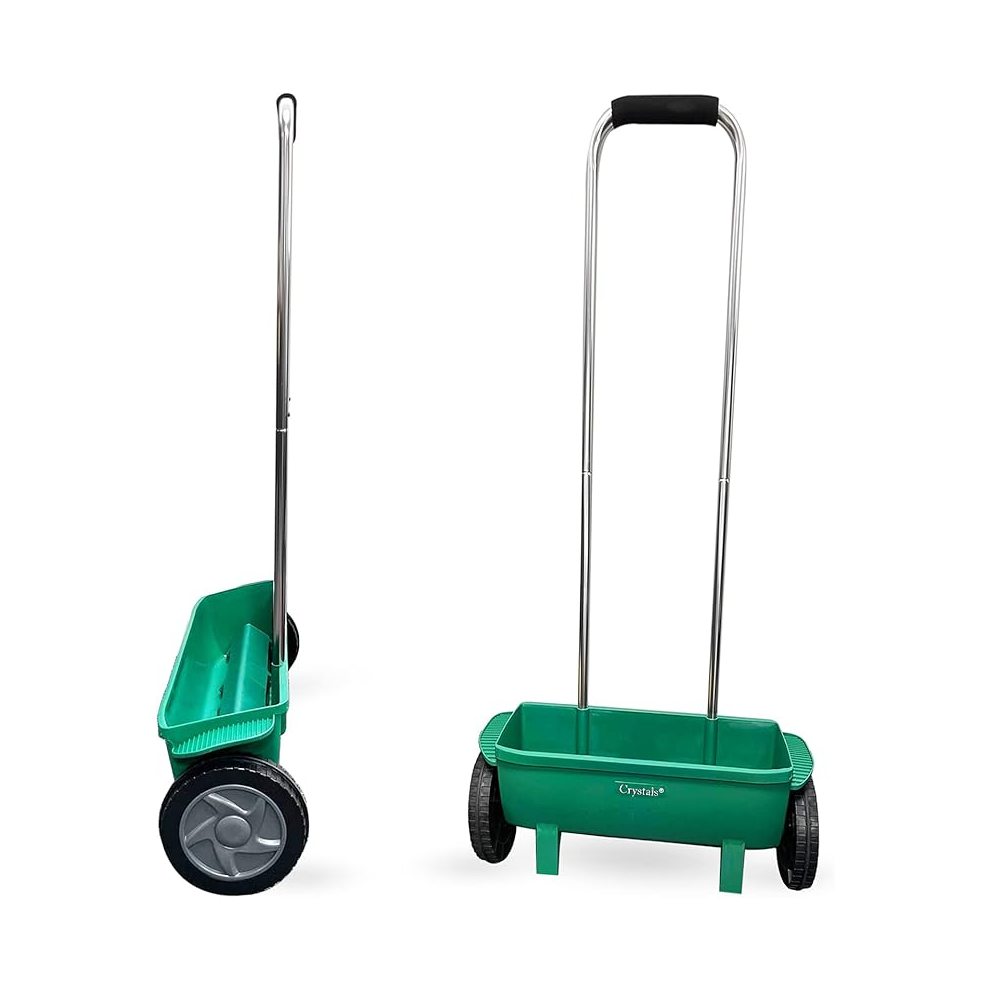 Crystals® Lawn Seed & Fertiliser Spreader – Heavy-Duty Garden Spreader with Large Wheels & Adjustable Settings – Ideal for Grass Seed, Lawn Feed & Fertiliser – H108 x W56 x D18cm, 1.85kg