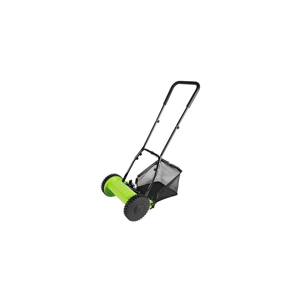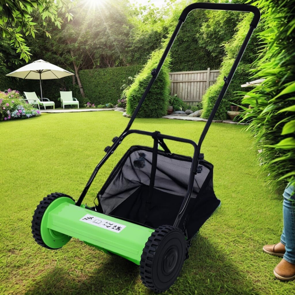 14 Inch 5 Blade Manual Push Lawn Mower, Green Reel Mower with Grass Catcher and Ergonomic Handle