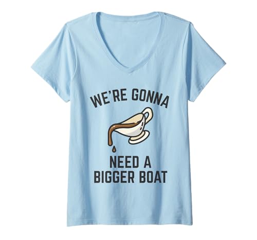 Womens We're Gonna Need A Bigger Gravy Boat Funny Thanksgiving Pun V-Neck T-Shirt