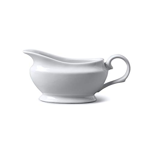 Glow Traditional Gravy Boat – Elegant White 150ml Ceramic Serving Jug for Cream Custard Sauces – Perfect for Dining Table Restaurant Café Christmas Wedding Roast Dinners – Dishwasher Microwave Safe